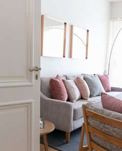 Doble costura, estructura maciza, relleno placa super soft, patas de madera con lustre a elección.